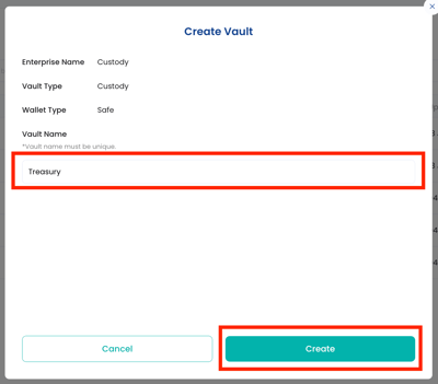 - From the dashboard, locate and click “Create Vault” on the right side of the screen.