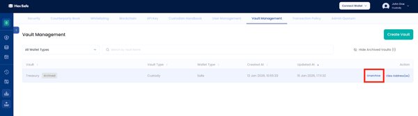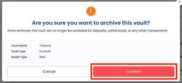 - To unarchive it, toggle the “Show Archived Vault”, then click “Unarchive” and “Confirm”.